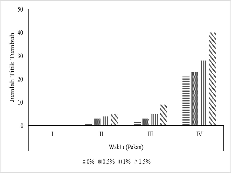 Cultivation of the seaweed Gracilaria verrucosa is necessary as a preventive measure against overexploitation. One applicable method is tissue culture, which requires special attention to nutrient needs to support accelerated growth. These nutrients can be provided through fertilization. One commonly used chemical fertilizer in seaweed tissue culture is Provasoli’s Enriched Seawater (PES). This study aims to determine the optimal PES fertilizer dosage for the production of G. verrucosa seedlings through tissue culture using a vegetative propagation method. This study used a completely randomized design with analysis of variance (ANOVA) consisting of four treatments of different PES fertilizer doses with three replicates for each treatment. The results showed that fertilizer dose variation did not significantly affect the absolute growth of explant weight, but tended to increase the number of growth points. Growth points began to increase in the second week for all treatments, and by the fourth week, the number of growth points at a 1.5% dosage showed a significant difference compared to other doses. The application of PES fertilizer in G. verrucosa seedling production through tissue culture with vegetative propagation indicates that different fertilizer doses do not affect explant growth but significantly influence the increase in growth points by the fourth week