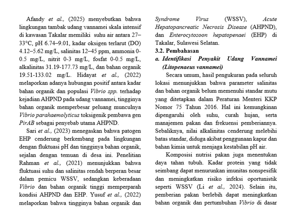 Kajian Analisis Penyakit Pada Udang Vannamei (Litopenaeus Vananmei) Skala Intensif, Takalar, Sulawesi Selatan